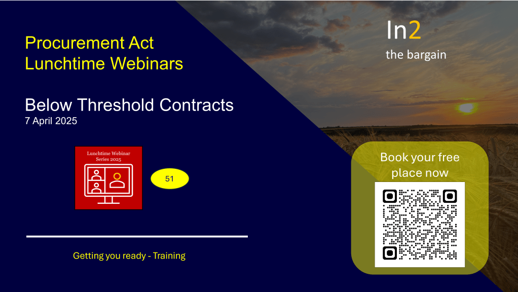 Our next free webinar will be on 7 April 2025 at 12:30 when we will be discussing an area where we still get many queries; below threshold contracts.